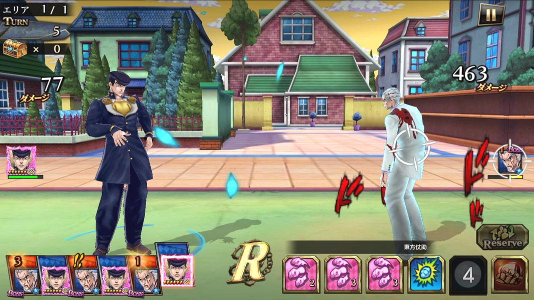 JoJo's Bizarre Adventure Diamond Records Reversal - это игра-файтинг с системой тактических сражений. Здесь вам предстоит управлять одними из самых известных героев аниме манго JoJo's Bizarre Adventure. Giorno, Jonathan, Joseph, Zeppeli, Speedwagon, Josuke, и многие другие.В JoJo's Bizarre Adventure Diamond Records Reversal реализована пошаговая система сражений. Во-первых, вы можете выбрать один из доступных навыков своего героя, и затем выплеснуть это на своего противника. Каждый из героев обладает своими уникальными способностями. Вам придётся научиться как применять самые лучшие приёмы в нужный момент, чтобы выиграть в самых сложных сражениях.Начиная играть в JoJo's Bizarre Adventure Diamond Records Reversal, у вас будет лишь небольшая горстка героев. Но завершая миссии в режиме истории, вы сможете добавить намного больше героев к своей коллекции, которые могут быть использованы в любом сражении. Между сражениями в режиме истории у вас будет возможность смотреть сцены из аниме, которые повествуют часть официального сюжета саги.JoJo's Bizarre Adventure Diamond Records Reversal - это тактическая игра экшен с простым игровым процессом. В добавок, у неё поразительная графика, а так же возможность управлять одними из самых известных героев в истории аниме.
