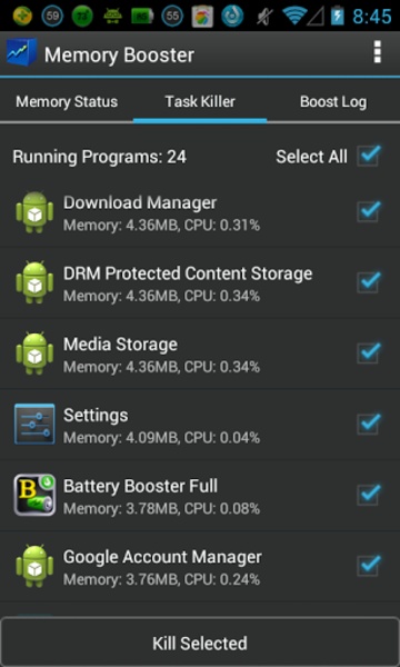 Memory Booster - это инструмент для оптимизации системы Android, позволяющий поддерживать операционную систему телефонов и планшетов в хорошем состоянии более долгое время. Приложение помогает решить проблемы управления памятью, а также исправляет любые ошибки при помощи дефрагментации памяти.Основные задачи Memory Booster - освободить память на Android, увеличить скорость работы системы и сохранить заряд батареи. В меню приложения вы сможете выбрать, какие приложения нужно добавить в белый список и какие приложения (потребляющие много памяти) необходимо закрыть.Одной из наиболее интересных функций Memory Booster является возможность оптимизировать работу системы одним нажатием. Благодаря этой функции, все, кто хочет хоть немного повысить производительность устройства, смогут сделать это менее чем за 2 секунды. Одно касание и готово!Memory Booster - это хороший и удобный в использовании инструмент для оптимизации. Приложение обладает простым и приятным интерфейсом, который будет удобен как для продвинутых пользователей, так и для новичков.