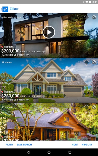 Zillow - это приложение для покупки, продажи и аренды домов в Соединенных Штатах. В нем вы найдете миллионы домов, предлагаемых со всей необходимой информацией, включая планировку, квадратные метры и фотографии. Мультимедийный контент, поддерживаемый Zillow, включает виртуальные экскурсии по объекту, а также фотографии в формате 360º.Если вы добавляете недвижимость для продажи или сдачи в аренду, в Zillow есть инструмент под названием Zestimate, который вычисляет предполагаемую стоимость недвижимости. Параметры для вычисления этой цены обновляются ежедневно, так что вы сможете получить самую точную оценку стоимости вашей недвижимости.В разделе поиска можно применять различные фильтры. Помимо количества спален или ванных комнат, вы также можете выбрать, находится ли дом близко к таким объектам, как супермаркеты или школы, а также есть ли из него красивый вид или в нем разрешено проживание с домашними животными.Zillow позволяет сохранить несколько поисковых запросов по разным параметрам или областям. Благодаря этому вы можете получать уведомления, когда в определенном районе появляется новая недвижимость или когда одно из свойств, отмеченных вами как избранное, падает в цене. Вы также можете согласовать поиск с другим человеком, если ищете совместное жилье.Если вы ищете дом в Соединенных Штатах, загрузка этого APK - отличный шаг к нахождению идеального места по лучшей цене.