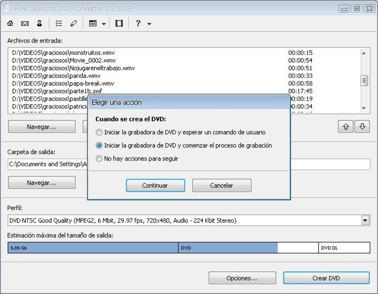 Если вам понадобилось приложение для создания DVD с любимыми видео, то это приложение – именно то, что вы ищете.Free Video To DVD Converter – это очень простое в использовании приложение, которое создано, чтобы конвертировать любое видео в формат DVD и записывать его на диск, благодаря чему вы сможете просмотреть это видео на большинстве домашних DVD плееров.Free Video to DVD Converter поддерживает большинство видео форматов: AVI, MPG, MP4, WMV, ASF, MOV, 3GP или FLV, то есть вы сможете конвертировать практически любое видео.Все, что вам понадобится – это выбрать видео файлы, которые вы хотите добавить на диск DVD, выбрать конечную папку и качество выходного видео, а также формат PAL или NTSC.Наконец, приложение может прожигать DVD диски также, поэтому вам не понадобится устанавливать какие-либо другие сторонние программы для прожига дисков.