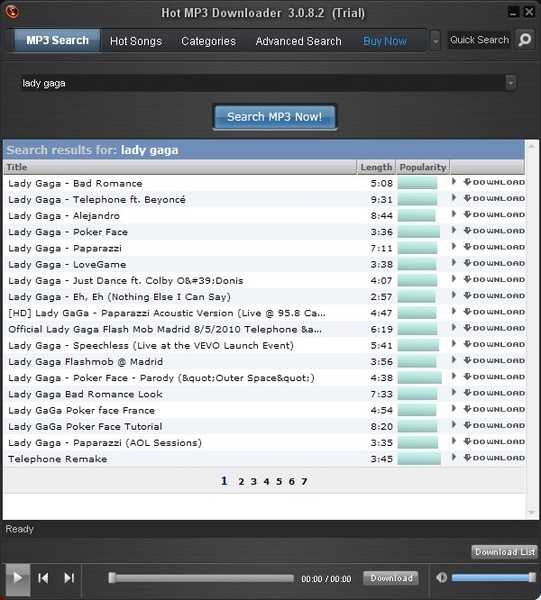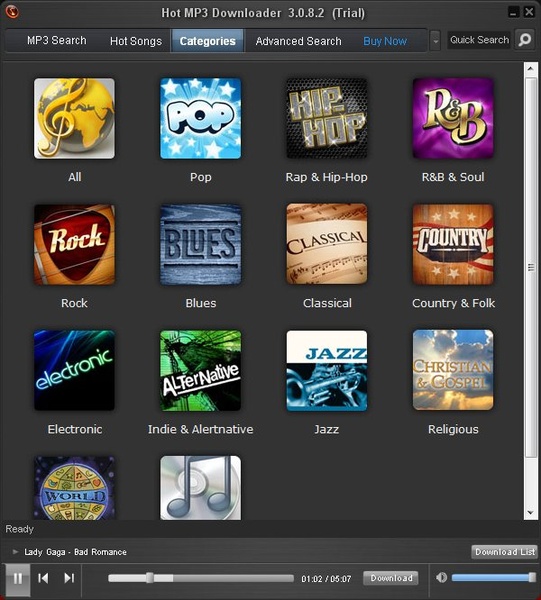 Hot MP3 Downloader – это программа для загрузки музыки, которая открывает перед вам доступ к базе данных с миллионом песен.Вы можете искать песни по различным параметрам: жанр, исполнитель, популярность, дата,... А затем перед тем, как загрузить композицию напрямую вы сможете предварительно послушать композицию.Если вы решите скачать файл, то сможете это сделать всего в один клик, выбрав качество и папку закачки. Музыкальные файлы окажутся на вашем жестком диске за считанные минуты и совершенно бесплатно. Кстати, загружаемые файлы совместимы с iPod, PSP, iPhone,...Hot MP3 Downloader – это отличная альтернатива Spotify, поскольку он имеет столь удобную кнопку для скачивания файлов.