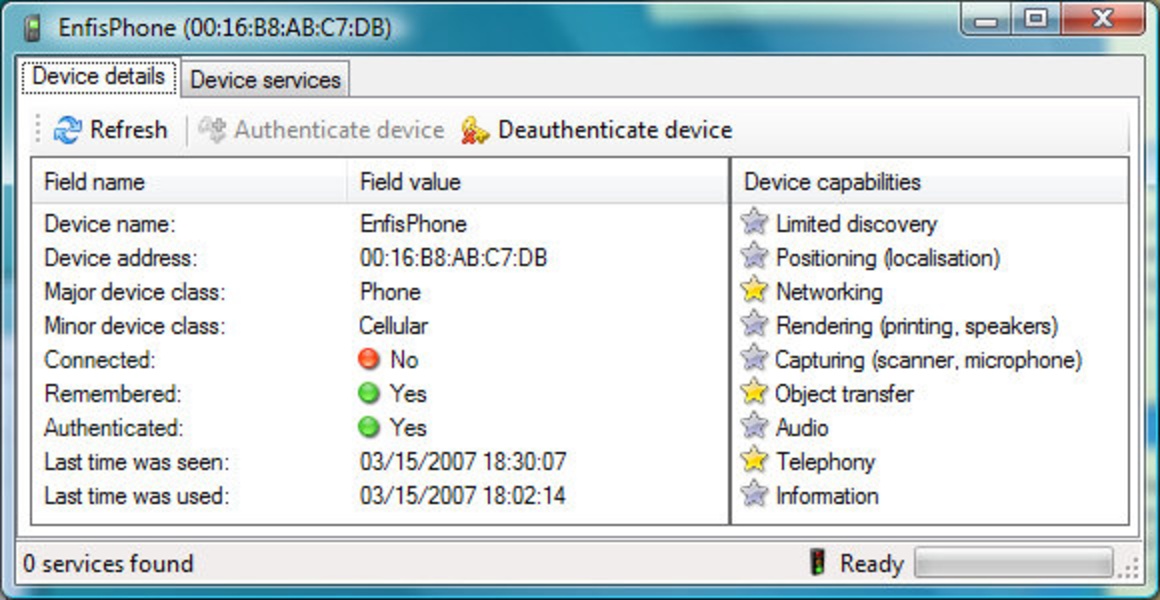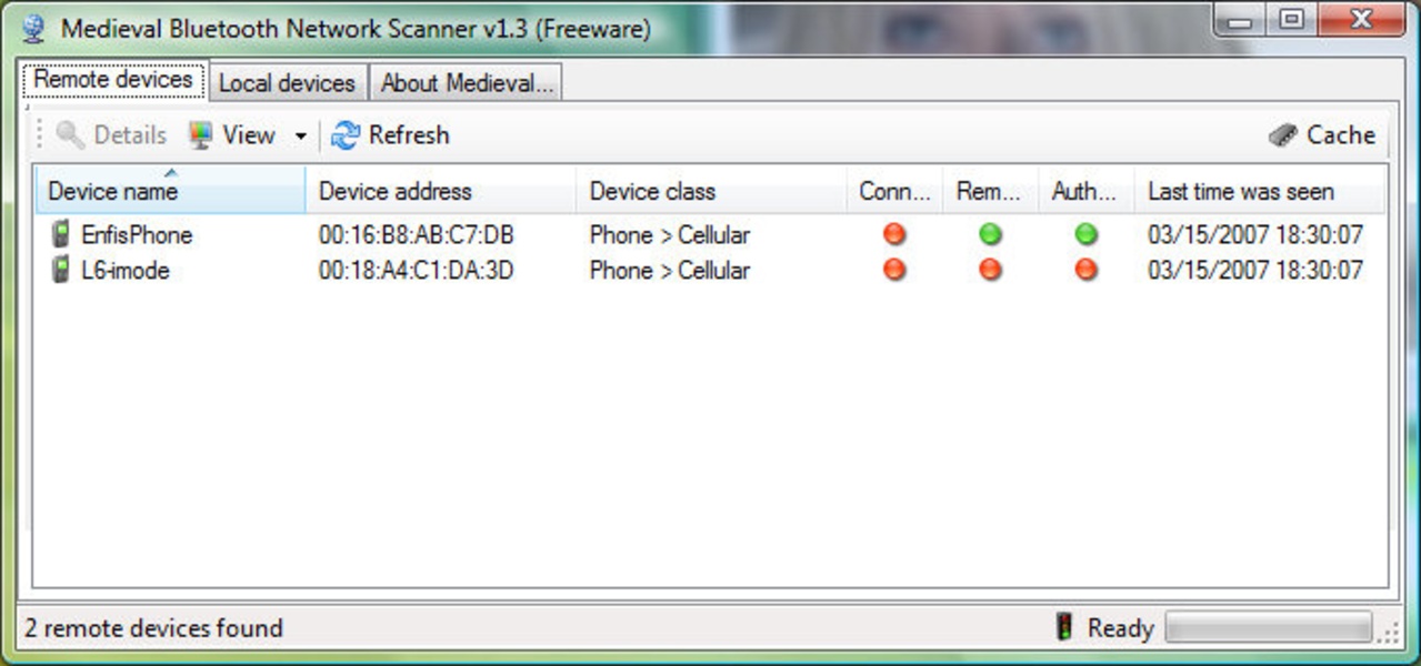 Если ваш компьютер оснащен устройством Bluetooth, вполне возможно, что это приложение вас заинтересует. Вполне вероятно, что указанный компонент имеет свое собственное программное обеспечение, которое позволит вам выполнять некоторые операции с остальными устройствами.Тогда для чего нужен Medieval Bluetooth Network Scanner? Ну, основным преимуществом при использовании этого приложения является то, что оно способно обнаруживать то, что могут делать другие найденные устройства.Так, если ваше устройство Bluetooth обнаружило мобильный телефон, который поддерживает копирование отдельных файлов, то Medieval Bluetooth Network Scanner графически выделит его звездочкой. Оно может также определить связь с другими устройствами, такими, как клавиатура или мышь.Помните, что Medieval Bluetooth Network Scanner требует Microsoft .NET Framework 2.0