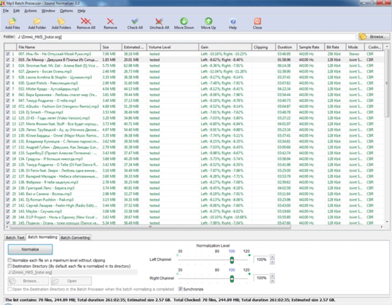 Sound Normalizer – это очень эффективный инструмент для улучшения качества звука ваших аудио файлов.Программа за доли секунды проанализирует файлы в форматах PCM 8, 16, 24, 32 bits, DSP, GSM, IMA ADPCM, MS ADPCM, AC3, MP3, MP2 или MP3. Оно отображает результаты полной проверки файла, и указывает уровень громкости, распределение между левым и правым каналами, и свойства формата.Как только анализ файла завершен, Sound Normalizer позволяет вам нормализовать файл, путем изменения двух звуковых каналов и даже позволяет прослушать файл до сохранения всех изменений. Кроме того, программа также позволяет изменять теги файлов и конвертировать из WAV в MP3 и наоборот.